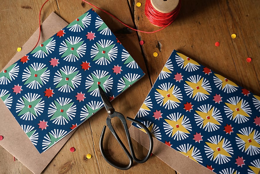 These bright and jolly starry patterned cards are perfect for any celebration, be it birthdays or even Christmas, as they are left blank inside for your own message. The two designs have been created from paper cut patterns.